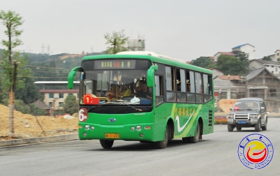 图为张家界学院调派的1号学生运输车进入新校区 摄影 刘昒