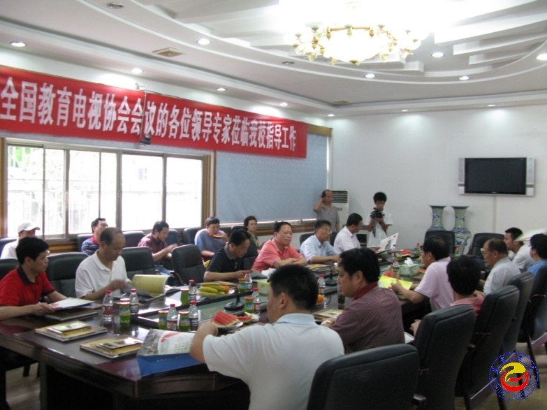 本网讯(记者 苏卫平)7月20日下午,中国教育电视台党委书记、副台长黄百炼,中国教育电视协会会长宋成栋率全国各省、市教育电视台负责人莅临威廉希尔官网指导工作。校党委委员、副校长张建永,校办主任戴林富等与来宾在校办二会议室进行座谈,并陪同黄百炼一行参观了黄永玉艺术博物馆。