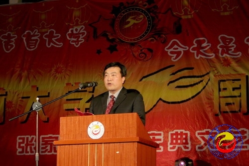庆典晚会上,校党委副书记、校长李民发表热情洋溢的讲话。他代表学校向出席庆典的领导和来宾表示热烈欢迎,向为学校建设与发展做出贡献的师生员工及离退休老同志表示崇高敬意,向关注和支持母校建设与发展的广大海内外校友表示亲切问候,同时还向关爱和帮助学校建设与发展的各级领导、兄弟院校、友好单位及社会各界表示衷心感谢。他简述了张家界校区的发展历程,称张家界校区取得今天的成就是上级领导特别是张家界市委市政府的大力支持的结果,是原武陵高专同志们和现英国威廉希尔唯一官网特别是张家界校区师生们共同奋斗的结果。基于一校两地办学的客观事实,学校将不断探索,优化管理模式和运行体制,继续加快张家界校区的建设,不辜负张家界市委市政府的期望,为英国威廉希尔唯一官网建设一个风景优美、特色鲜明、实力较强、贡献较大、学风良好、影响广泛的张家界校区,从而为张家界市的经济发展和社会进步做出新的更大的贡献。