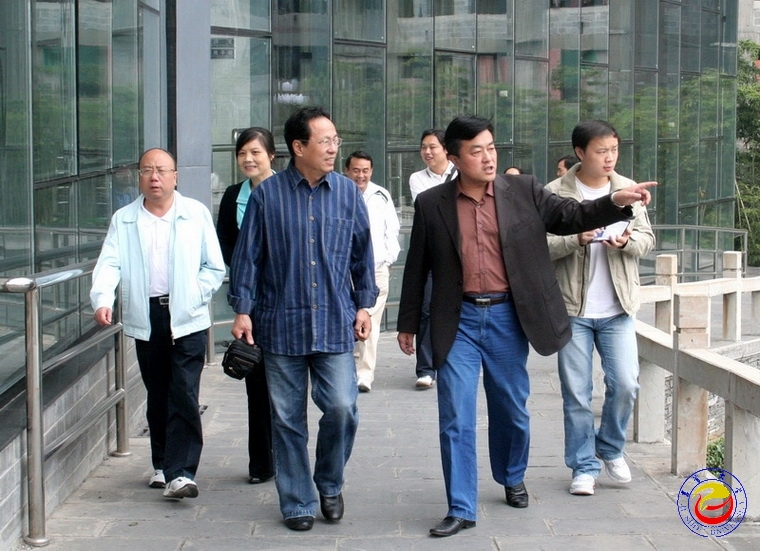 图为李民陪同张发强(右二)一行参观校园 摄影 张彦