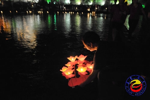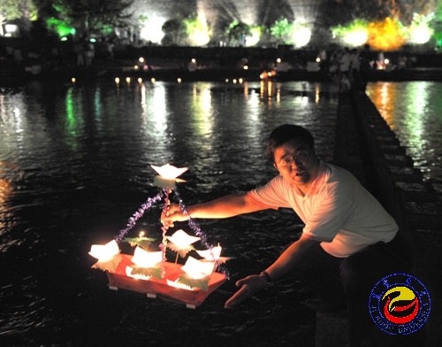 校友张永中为母校五十年校庆祈福燃放河灯 摄影 曾琼