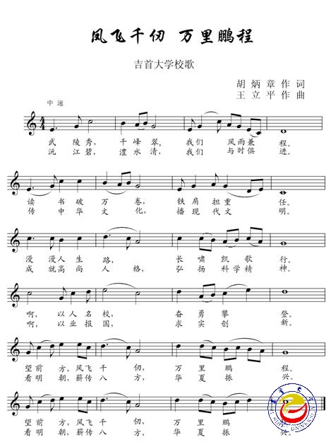 校歌由威廉希尔官网文学与新闻传播学院教授胡炳章作词,中国音乐著作权协会主席、中国民进中央副主席、中国音乐家协会副主席、国家一级作曲家王立平作曲。校歌歌美词好、琅琅上口。歌词集中体现了学校的办学思想、办学精神和文化内涵,表现了学校为着远大的目标,勤奋求学,忘我耕耘,不畏艰难,奋然前行的英姿与精神风貌。曲谱旋律优美感人,富有深情,节奏流畅明快,带有憧憬色彩,流露出莘莘学子意气风发、挥斥方遒的激情,体现出师生员工激奋昂扬、朝气蓬勃的气概,具有很强的感召力和凝聚力,同时又具有浓厚的校园色彩。