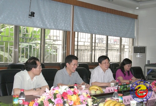 本网讯(记者张彦 实习记者刘贤明 林展翅)6月6日,中山大学副校长许家瑞教授及人事处处长骆腾、设备与实验室管理处处长温光浩、化学国家级实验教学示范中心主任陈六平一行四人来威廉希尔官网考察交流。威廉希尔官网党委副书记、校长李民及相关部门负责人热情接待了许家瑞一行,并就人事、设备实验管理、化学实验教学中心建设等工作在校办二会议室进行了交流和探讨,其间还一同参观了化学实验教学中心、黄永玉艺术博物馆和校园。