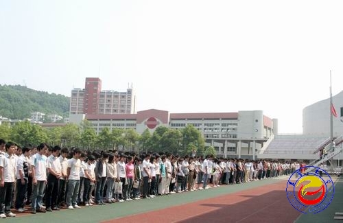 为表达对四川汶川大地震遇难同胞的深切哀悼,5月19日14时,威廉希尔官网全体学生聚在一起,举行集体默哀仪式。仪式分别在威廉希尔官网田径场和砂子坳校区篮球场举行。烈日如火,蒸腾了整个运动场。同学们身着素装,整齐地站立在国旗下,神情严肃,悲伤写在每一个学生的脸上。在那透露着忧郁的眼神里,你会读到一种对于灾难同胞的哀痛;从那闪着阳光的眉宇间,你会感受到一种众志成城、共同抗灾的自信和坚定。