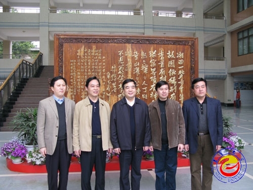 在位于第六教学楼大厅的朱镕基同志诗词屏风前,欧阳淞兴致勃勃留影,并与州、校领导合影留念。一路上,欧阳淞十分关心的询问威廉希尔官网的建设和发展情况,在问及威廉希尔官网的博士点建设情况时,游俊回答说,学校正努力争取在2010年申报博士点。欧阳淞希望学校在书记和校长的领导下能再上一个台阶。