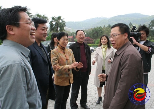 校长李民、副书记刘靖、校长助理赵鹤平等接待了朱孔军一行 摄影 洪波