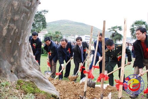 随后,在阵阵掌声与礼炮声中,学校领导和花垣县领导一起为紫薇树培土。