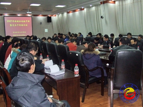 本报讯(实习记者 刘贤明 彭文鸿)12月25至27日,党委组织部举办了2007年新提任处级干部暨党务干部培训班,39名新提任处级干部及52名党务干部参加了培训。开班仪式于25日上午在齐鲁大楼六楼多功能会议室举行,张家界校区视频会议同步进行。校党委书记、校长游俊,副校长张建永与会并发表了重要讲话。开班仪式由组织部正处级组织员吴奕全主持。
