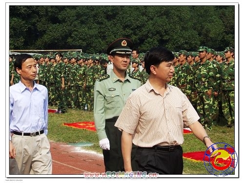 (图二)游俊书记、李克纲副校长检阅军训方阵