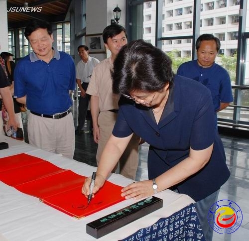 (田淑兰为黄永玉艺术博物馆签名纪念)